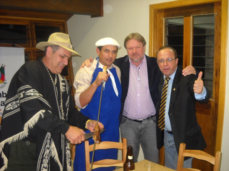 Nesta semana aconteceu um jantar na Expointer, tudo a cargo do deputado Chicão, que fez um agradinho aos colegas parlamentares. Na foto, Chicão, o cantor santiaguense Júlio Saldanha e o presidente da Assembleia Legislativa, Adão Vllaverde. Entrosamento é tudo.