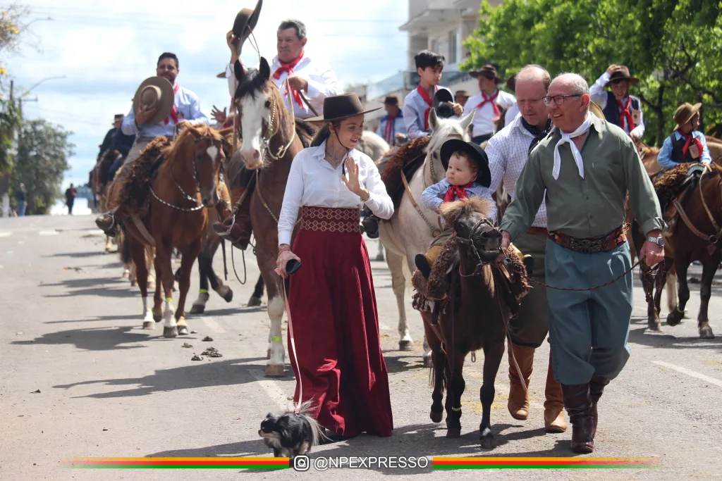Com o tempo colaborando neste domingo (28), o desfile tradicionalista, que havia sido adiado devido à chuva, finalmente pôde ser realizado. A manhã ensolarada trouxe um grande público para a avenida Júlio de Castilhos. O prefeito Marcelo Piru, a cavalo, e a vice-prefeita Mara Rebelo, em uma charrete, abriram o evento, que foi encerrado pelo piquete Universitário, da URI, pouco antes do meio-dia.