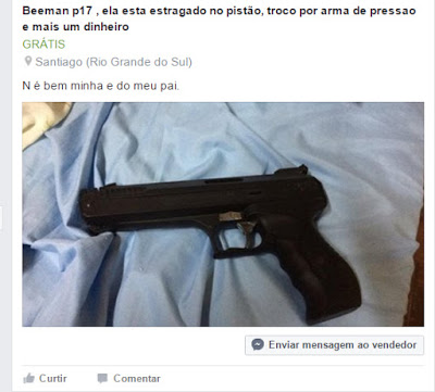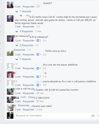 Geral InícioGeral Santiago vende armas pela internet? Publicado em 19/01/2017 POR NP Expresso FacebookTwitterWhatsAppLinkedinTelegram Claro que não! Seria contra a lei, mas quem olhar no ‘FACEBRICK SANTIAGO’ verá jovens oferecendo armas, seja de pressão ou até as verdadeiras. Veja as ofertas DEIXE UMA RESPOSTA Cancelar resposta Comentário: Por favor digite seu comentário! Nome:* Por favor, digite seu nome aqui E-mail:* Você digitou um endereço de e-mail incorreto! Por favor, digite seu endereço de e-mail aqui Site: Salve meu nome, e-mail e site neste navegador para a próxima vez que eu comentar. Siga o NP Expresso 184.758 132,618FãsCurtir 73,451SeguidoresSeguir Notícias Recentes Nacional Criança fica em estado grave após ataque de pitbull Xaxim, SC - Uma criança de 9 anos ficou em estado grave depois de... 23/03/2026 Estado A confusão começou durante a perturbação do sossego Nonoai - RS - (Região de Erechim) - Um sujeito acabou m0rt0 e dois... 23/03/2026 Nacional Lula sanciona venda de medicamentos em supermercados Nacional – Os estabelecimentos precisam ter área separada e exclusiva para os remédios. O... 23/03/2026 Geral Começa o prazo para envio da declaração do Imposto de Renda A Receita Federal espera receber cerca de 44 milhões de declarações. No RS, a... 23/03/2026 Leia Também Nacional Criança fica em estado grave após ataque de pitbull Xaxim, SC - Uma criança de 9 anos ficou em estado grave depois de... 23/03/2026 Estado A confusão começou durante a perturbação do sossego Nonoai - RS - (Região de Erechim) - Um sujeito acabou m0rt0 e dois... 23/03/2026 Nacional Lula sanciona venda de medicamentos em supermercados Nacional – Os estabelecimentos precisam ter área separada e exclusiva para os remédios. O... 23/03/2026 VER TODAS AS NOTÍCIAS