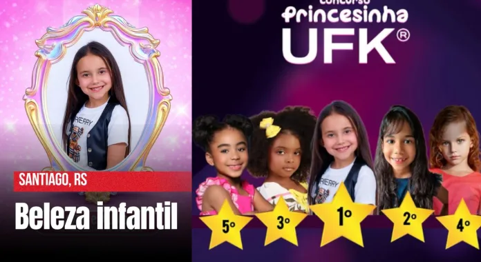Santiago, RS – A pequena Paola Elizabeth Fortes Rodrigues Cuti, de apenas seis anos, é a única representante de Santiago e região no concurso nacional Princesinha UFK (Universal Fashion Kids). Com um ano de trajetória no mundo da moda e dos palcos, a modelo mirim disputa o título com outras 75 candidatas de todo o país.