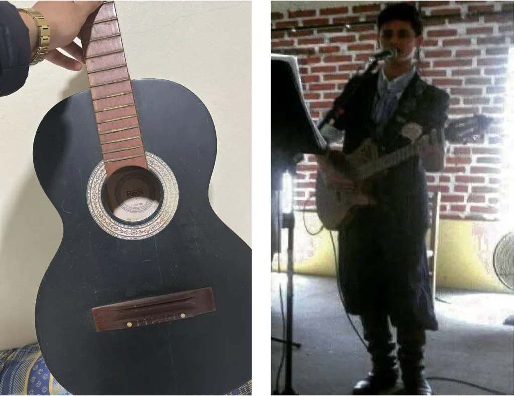 O primeiro violão veio de presente da tia Dinamar Meneses, no Natal. Já o tio Marcos Andrade lhe mostrou as primeiras notas no instrumento.