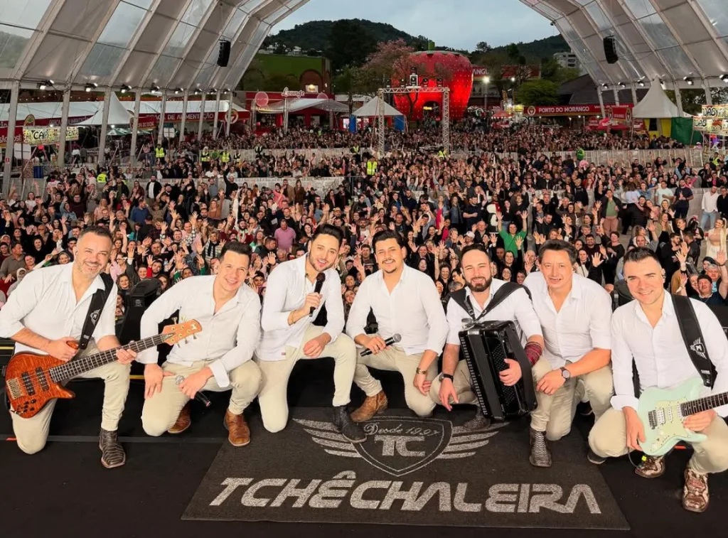 Santiago, RS – Um dos grupos mais tradicionais do Estado, o Tchê Chaleira, agora tem um talento santiaguense entre seus integrantes. Aos 24 anos, Vitor Machado é a nova voz do grupo e já conquista o público por onde passa.