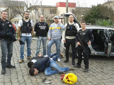 O agente penitenciário Maicon Pedroso Ferreira, 30 anos, levou dois tiros depois de uma tentativa de assalto em uma loja de conveniência em um posto na cidade da Serra Gaúcha. Maicon estava no local quando dois bandidos chegaram para o roubo, O agente reagiu, acertou um deles, mas acabou levando dois tiros, na barriga e cabeça. Foi hospitalizado, operado e continua em estado grave. Veja os vídeos do assalto. Os dois suspeitos abandonaram uma moto no local do crime. Acompanhe.