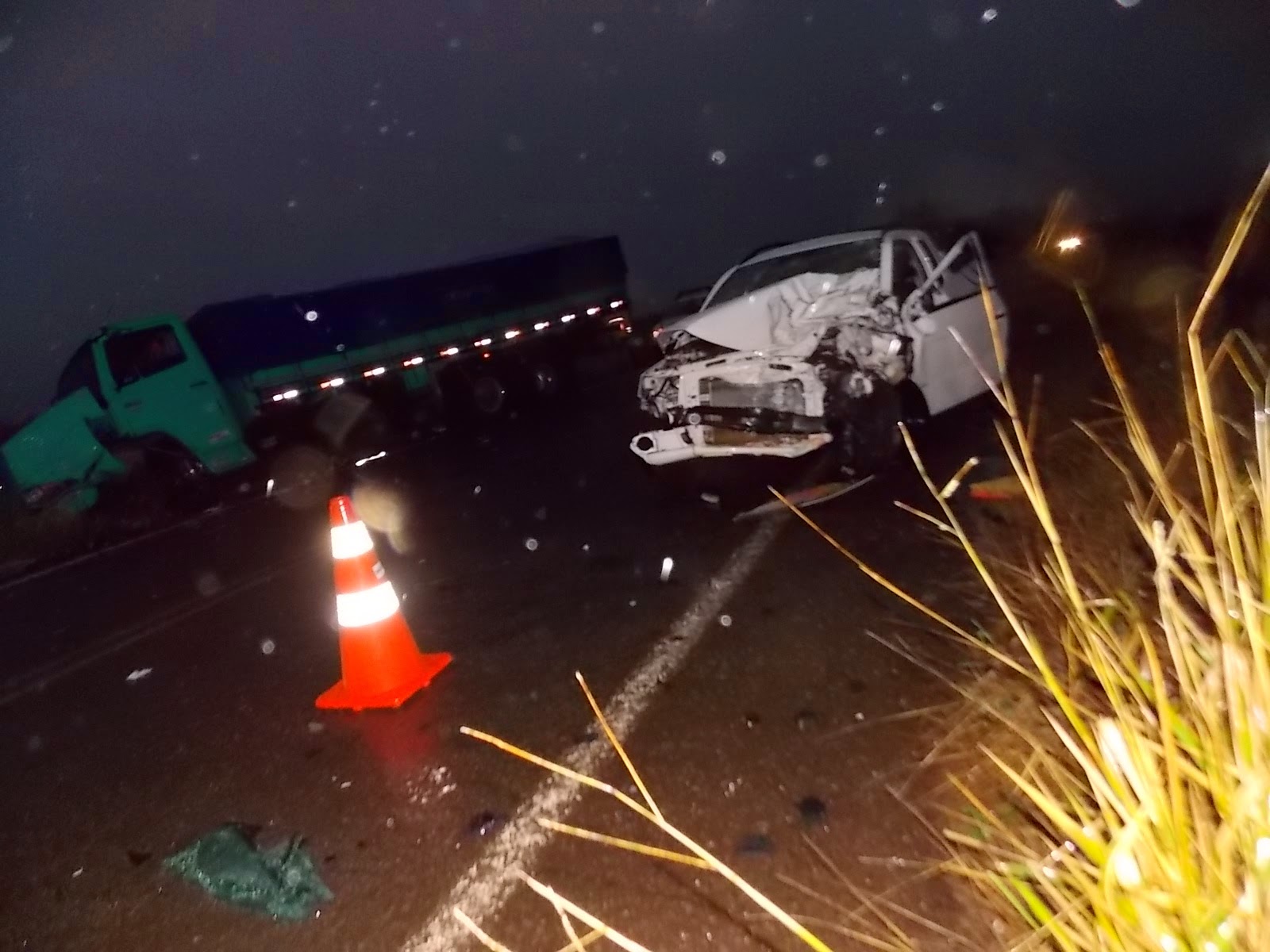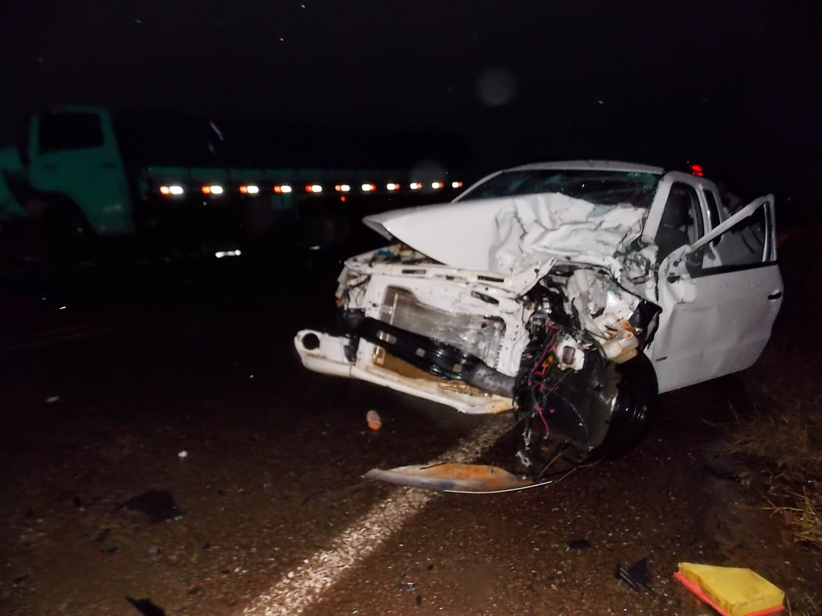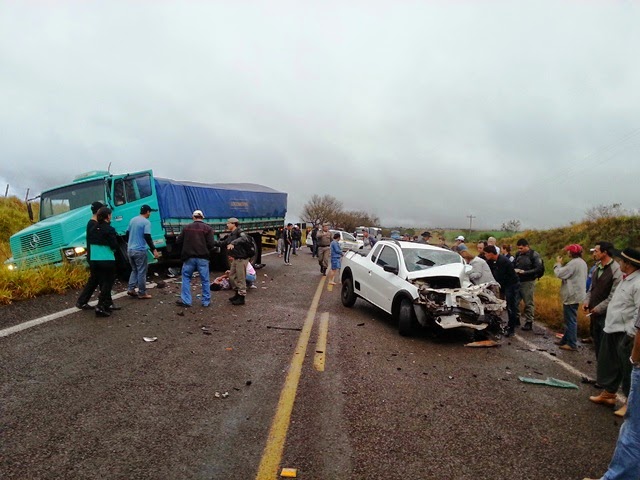 Uma Saveiro bateu de frente num caminhão que vinha de São Chico, na curva do Chimelo, logo depois do trevo de acesso ao bairro Italiano. Na Saveiro estavam a santiaguense Daiana Rodrigues de Oliveira, 20 anos, sua filhinha (um ano) e Maria Noemi Lima Machado. As três foram socorridas, levadas para o hospital de São Francisco e transferidas para Santiago. A garotinha já recebeu alta e as duas mulheres tiveram alguns ferimentos, mas nada com gravidade. O motorista do caminhão não se machucou.