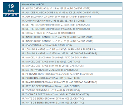 Luz – A AES Sul informa que hoje (19) haverá desligamento da luz em 24 ruas do município às 13h. O motivo são obras de manutenção de rede. A luz voltará às 17h. Veja onde acontecerá o desligamento.