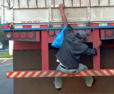 O professor Miro Bacin flagrou esta cena inusitada: “Na tarde de domingo, por volta das 18h30min, na rua Borges do Canto, um homem aproveitou o sinal fechado e pegou carona no para-choque de um caminhão que ia em direção à fronteira Brasil-Argentina. O motorista foi avisado por um motoqueiro. Um quilômetro adiante, encostou e retirou o ‘carona’’”.
