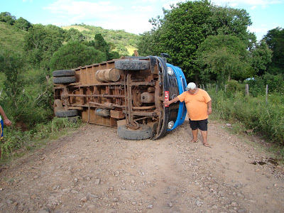 O nosso representante do jornal em Jaguari, Jeremias Oliveira, voltava agora à tarde para sua cidade, e ficou apavorado com o estado das estradas desde que entra no município até a proximidade da sede, onde encontrou uma patrola recuperando um trecho. No caminho fez várias fotos, até encontrar um caminhão virado no meio da pista, na localidade de Perseverança. O motorista, que não quis ser identificado, trazia uma carga de bois e perdeu o controle do caminhão numa subida pedregosa, voltando de ré até acabar virando. Jeremias disse que logo que chegou foi direto acessar ao Novapauta e se deparou com a matéria das estradas em Bossoroca, então logo concluiu: Eles não viram as de São Chico.