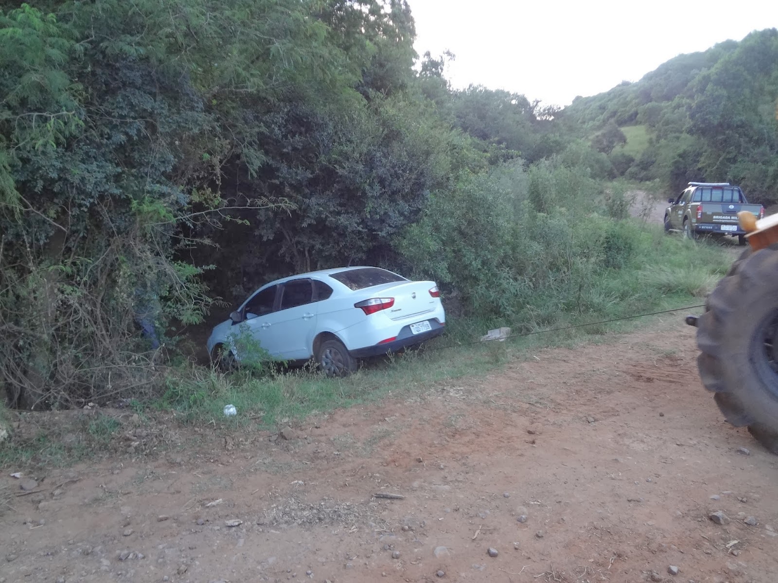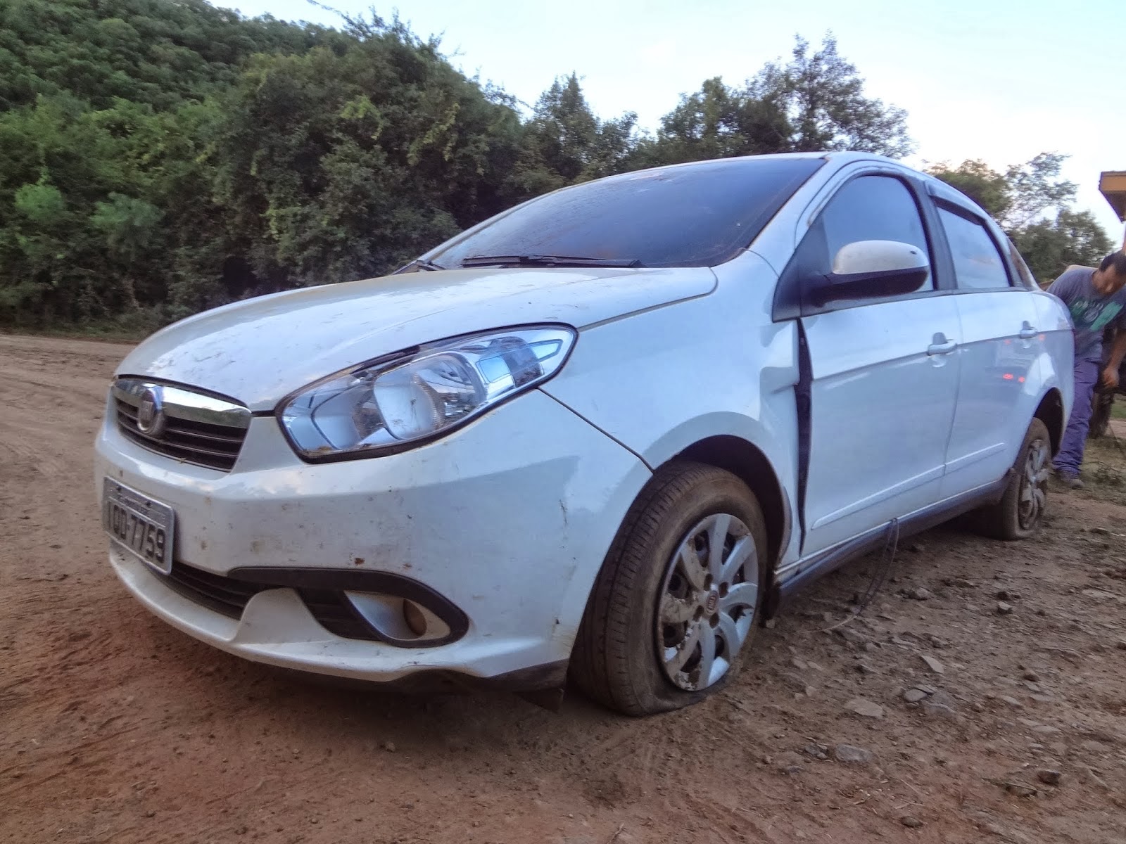 A Brigada encontrou na tarde de segunda um carro abandonado na estrada da Porteira do Toroquá. O Siena branco, com placas de Porto Alegre, estava com os pneus furados, lataria amassada e parabrisa quebrado. A suspeita é que esteja envolvido na ocorrência de contrabando de cigarros, registrada pela Polícia Rodoviária na tarde de domingo.