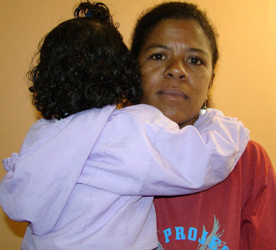 Viviane Trindade dos Santos e sua família, que moram numa das casinhas