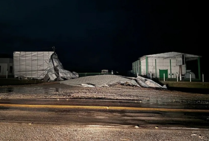 A Cooperativa Cotribá, localizada na BR-290, foi atingida pelo vendaval registrado na noite desta quarta-feira (22).