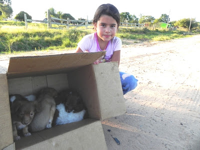 cadelinhas. Os filhotes foram deixados em uma caixa bem no meio da rua e