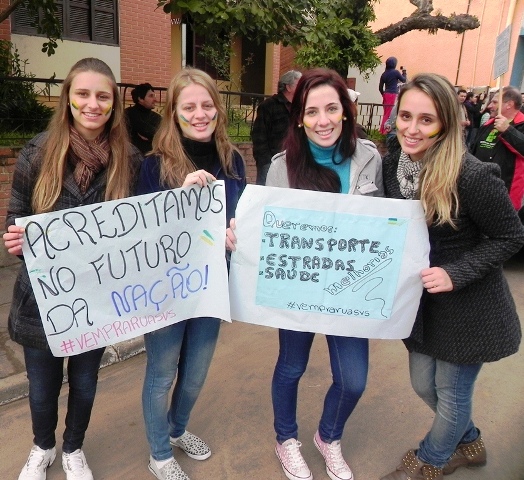 Centenas de pessoas terminaram há instantes um protesto em São Vicente. Estudantes do IFF saíram em caminhada pela rua e foram até a prefeitura, onde foram recebidos pelo prefeito Fernando Pahim, que leu as reivindicações. Hoje, à tardinha, será a vez dos assisenses irem às ruas. E, em Jaguari, o manifesto será segunda.