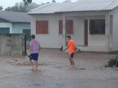 Os moradores da rua Visconde do Rio Branco em São Vicente do Sul não aguentam mais os seguidos alagamentos que invadem as casas. Diversas reclamações já chegaram à prefeitura e até agora nenhuma solução. Os bueiros não dão conta de tanta água e a rua fica intransitável.