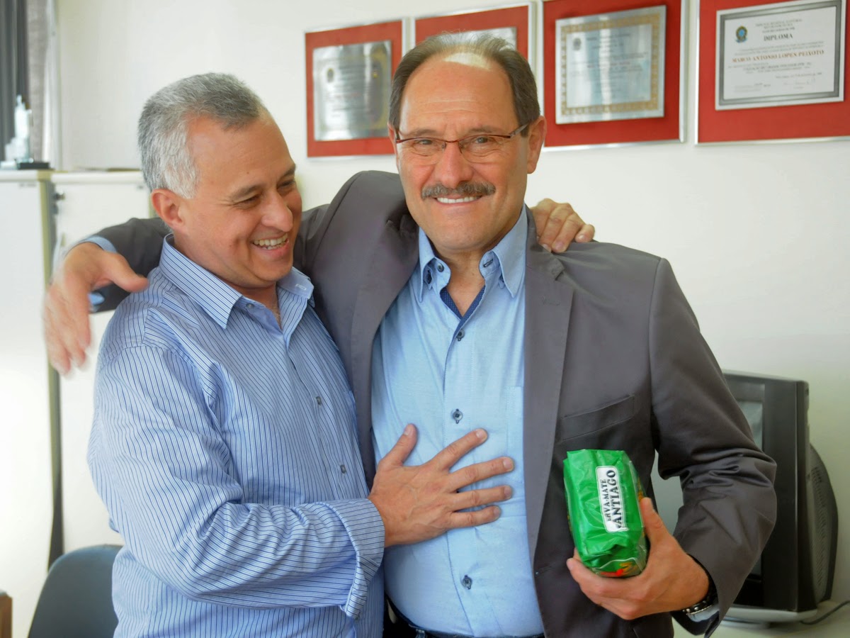 O conselheiro Marco Peixoto recebeu em seu gabinete, no Tribunal de Contas do Estado, uma visita muito especial: o novo governador José Ivo Sartori (PMDB). O santiaguense ficou feliz com a visita de Sartori, de quem foi colega na Assembleia Legislativa e aproveitou para pedir que ele dê uma atenção especial à sua cidade e região. Para não deixar o novo governador esquecer, ele deu a ele um presente inesquecível: um pacote de erva mate Santiago.