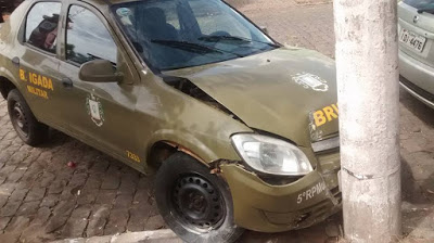 cerco. O motorista do carro da Brigada atingiu um poste ao desviar de um