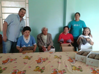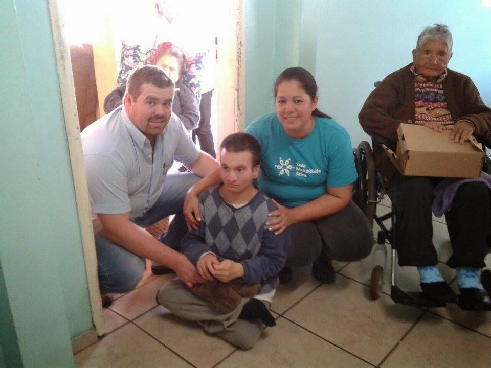 Santiago: o grupo Maturidade Ativa do SESC, em parceria com a Barraca Missões, entregou às mamães do asilo Santa Isabel chinelos de lã e pantufas, para aquecer o inverno deles. Esta ação social é uma parceria que ajuda e aquece os corações daqueles menos favorecidos.