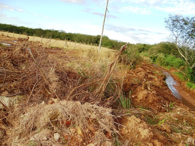 A Polícia Ambiental de Santiago interditou uma obra no Distrito Industrial. Uma retroescavadeira da prefeitura trabalhava no nivelamento do terreno para loteá-lo para instalação de novas empresas. O problema é que parte da área é de preservação permanente e a obra não tem liberação do órgão competente, que no caso, seria a Fepam. A atividade foi suspensa até que a licença seja apresentada.