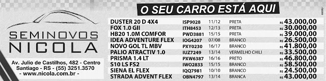 Geral InícioGeral Seminovos da Nicola Veículos Publicado em 04/10/2018 POR NP Expresso FacebookTwitterWhatsAppLinkedinTelegram DEIXE UMA RESPOSTA Cancelar resposta Comentário: Por favor digite seu comentário! Nome:* Por favor, digite seu nome aqui E-mail:* Você digitou um endereço de e-mail incorreto! Por favor, digite seu endereço de e-mail aqui Site: Salve meu nome, e-mail e site neste navegador para a próxima vez que eu comentar. Siga o NP Expresso 184.758 132,618FãsCurtir 73,451SeguidoresSeguir Notícias Recentes Geral Polícia Ambiental flagra coleta ilegal de pinhão verde Teixeira Soares, Paraná - Dois sujeitos fugiram após perceber a presença de policiais durante... 24/03/2026 Estado Faculdade suspende oito alunos após circulação de lista ofensiva contra alunas Pelotas - RS - (Região Sul) - O Instituto Federal Sul-rio-grandense (IFSul) agiu com... 24/03/2026 Geral Governo amplia limites do Minha Casa, Minha Vida O Conselho Curador do FGTS aprovou, nesta terça (24), a ampliação dos limites de... 24/03/2026 Geral John Deere amplia atuação no RS com novos equipamentos Canoas - RS - (Região Metropolitana) – Rodrigo Bonatto destacou novos investimentos da John... 24/03/2026 Leia Também Geral Polícia Ambiental flagra coleta ilegal de pinhão verde Teixeira Soares, Paraná - Dois sujeitos fugiram após perceber a presença de policiais durante... 24/03/2026 Estado Faculdade suspende oito alunos após circulação de lista ofensiva contra alunas Pelotas - RS - (Região Sul) - O Instituto Federal Sul-rio-grandense (IFSul) agiu com... 24/03/2026 Geral Governo amplia limites do Minha Casa, Minha Vida O Conselho Curador do FGTS aprovou, nesta terça (24), a ampliação dos limites de... 24/03/2026 VER TODAS AS NOTÍCIAS