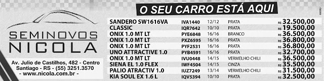 Geral InícioGeral Seminovos da Nicola Veículos Publicado em 19/09/2017 POR NP Expresso FacebookTwitterWhatsAppLinkedinTelegram DEIXE UMA RESPOSTA Cancelar resposta Comentário: Por favor digite seu comentário! Nome:* Por favor, digite seu nome aqui E-mail:* Você digitou um endereço de e-mail incorreto! Por favor, digite seu endereço de e-mail aqui Site: Salve meu nome, e-mail e site neste navegador para a próxima vez que eu comentar. Siga o NP Expresso 184.758 132,618FãsCurtir 73,451SeguidoresSeguir Notícias Recentes Nacional Jovem esfaqueia namorado e diz que agiu em legítima defesa Maceió, Alagoas - Bia Correia, de 21 anos, feriu o namorado, de 22, com... 24/03/2026 Geral Projeto Taifa descobre novos talentos da música Santiago - RS - (Região do Vale do Jaguari) - O sonho de transformar... 24/03/2026 Geral Mentoria com Quésia Vieira no Chuva de Ideias na reta final de inscrições Santiago, RS - A mentora Quésia Vieira será a responsável por conduzir a próxima... 24/03/2026 Geral Polícia Ambiental flagra coleta ilegal de pinhão verde Teixeira Soares, Paraná - Dois sujeitos fugiram após perceber a presença de policiais durante... 24/03/2026 Leia Também Nacional Jovem esfaqueia namorado e diz que agiu em legítima defesa Maceió, Alagoas - Bia Correia, de 21 anos, feriu o namorado, de 22, com... 24/03/2026 Geral Projeto Taifa descobre novos talentos da música Santiago - RS - (Região do Vale do Jaguari) - O sonho de transformar... 24/03/2026 Geral Mentoria com Quésia Vieira no Chuva de Ideias na reta final de inscrições Santiago, RS - A mentora Quésia Vieira será a responsável por conduzir a próxima... 24/03/2026 VER TODAS AS NOTÍCIAS