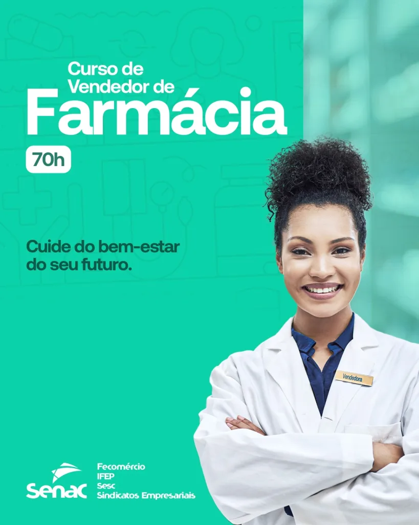 A capacitação foca no atendimento ao cliente e na rotina de farmácias, com formação direta pra quem quer começar ou se qualificar na área