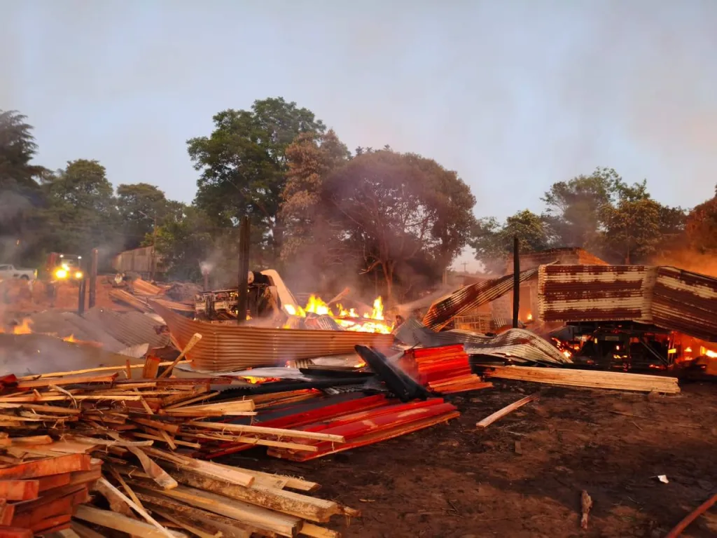 Ijuí, RS – Na madrugada desta quarta (19), um incêndio de grandes proporções consumiu a serraria do empresário Chico Seifert, na Linha 2 Norte, interior.