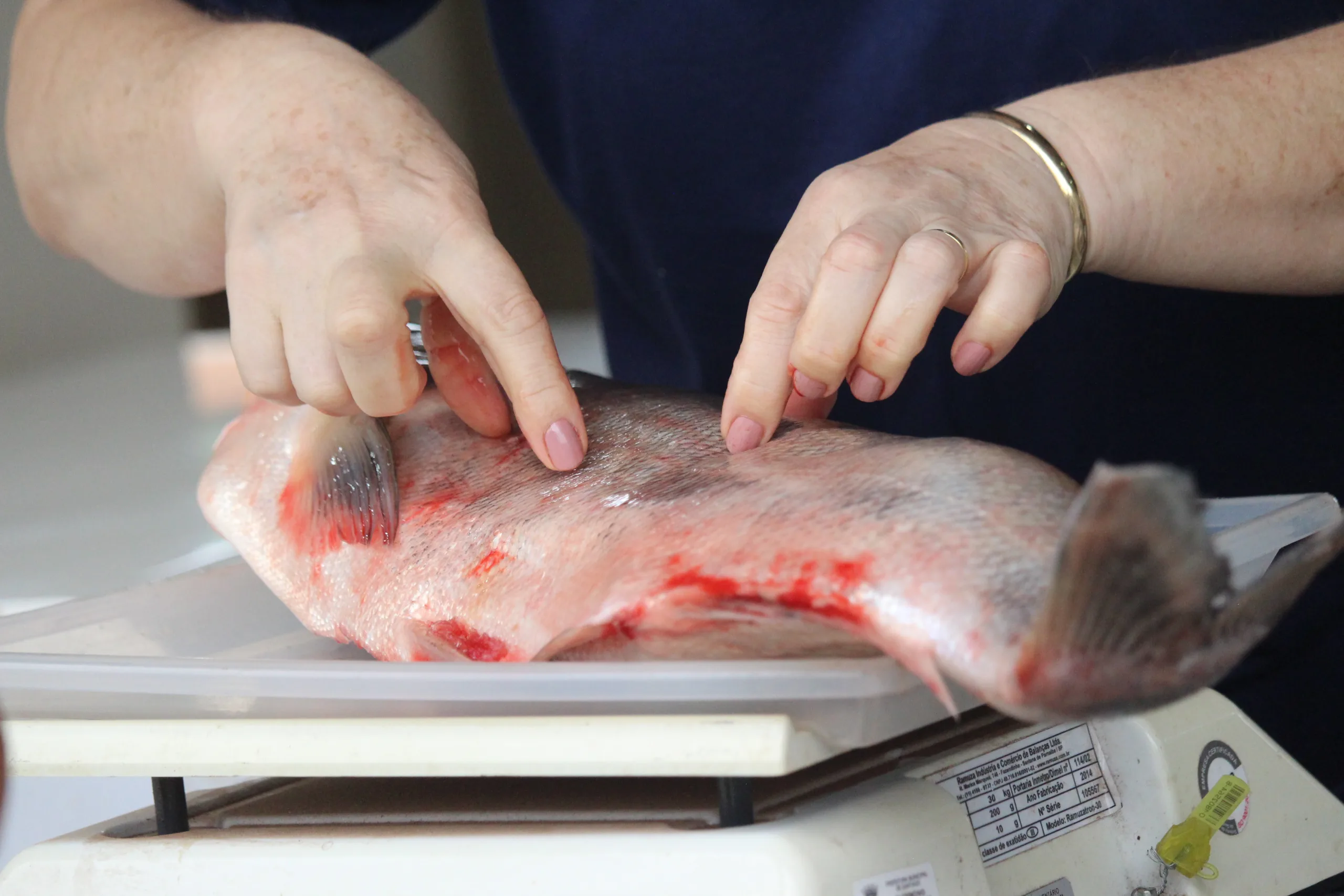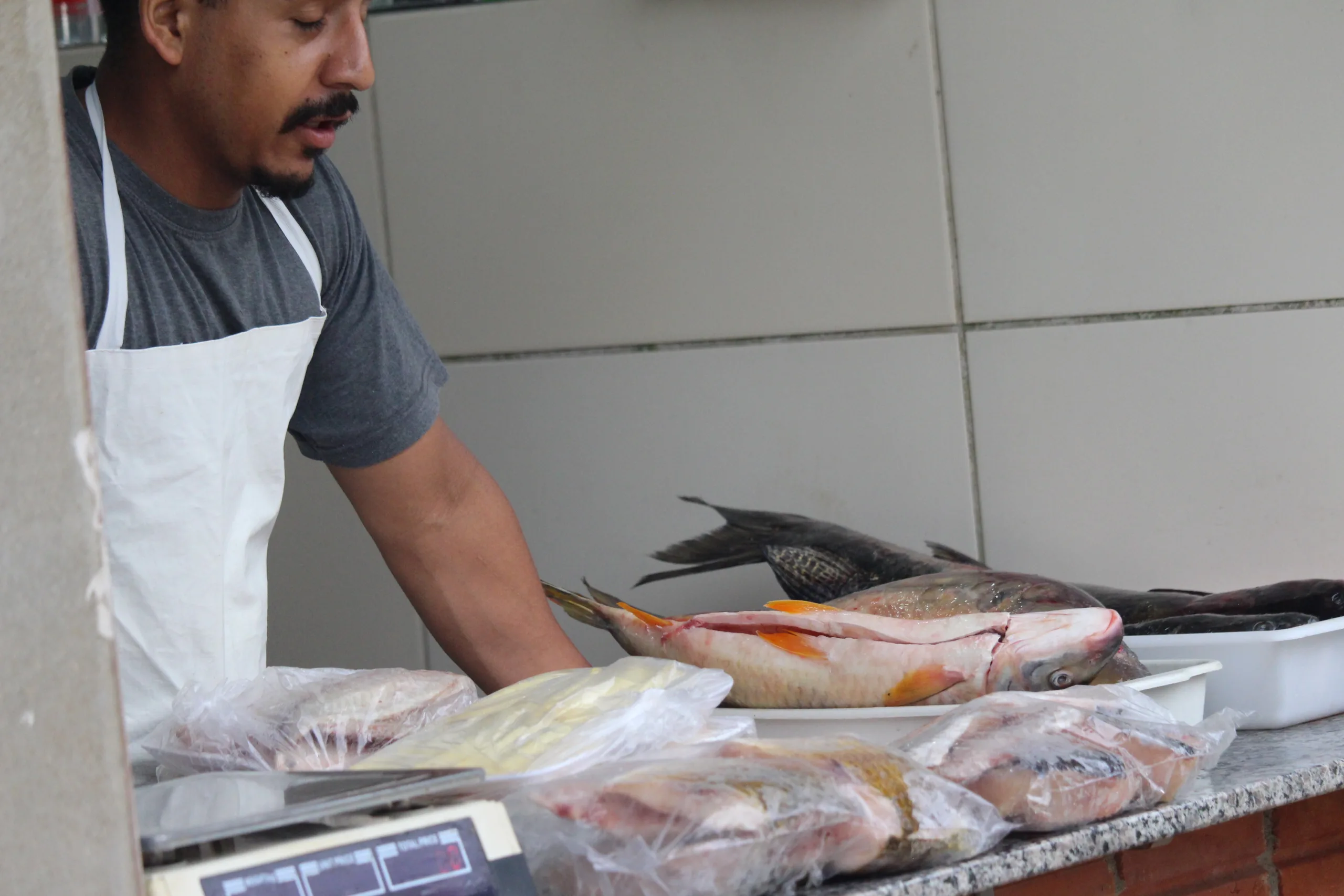 Limpeza – Para quem quiser já levar seu peixe limpo, há uma equipe fazendo o serviço.