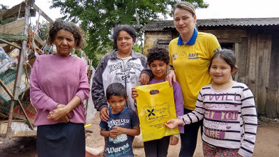 crianças do bairro Bonato. Andrei, de 3 anos, e Andriéle, 10, foram surpreendidos pelas empresas Rafa Brinquedos