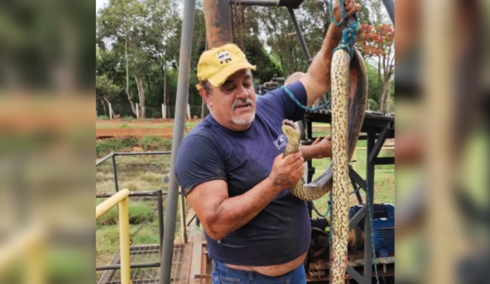 Cordeirópolis, no interior paulista — No sábado (2), uma sucuri entrou em um cano de captação de água da Represa de Cascalho e interrompeu o fornecimento de água na cidade.
