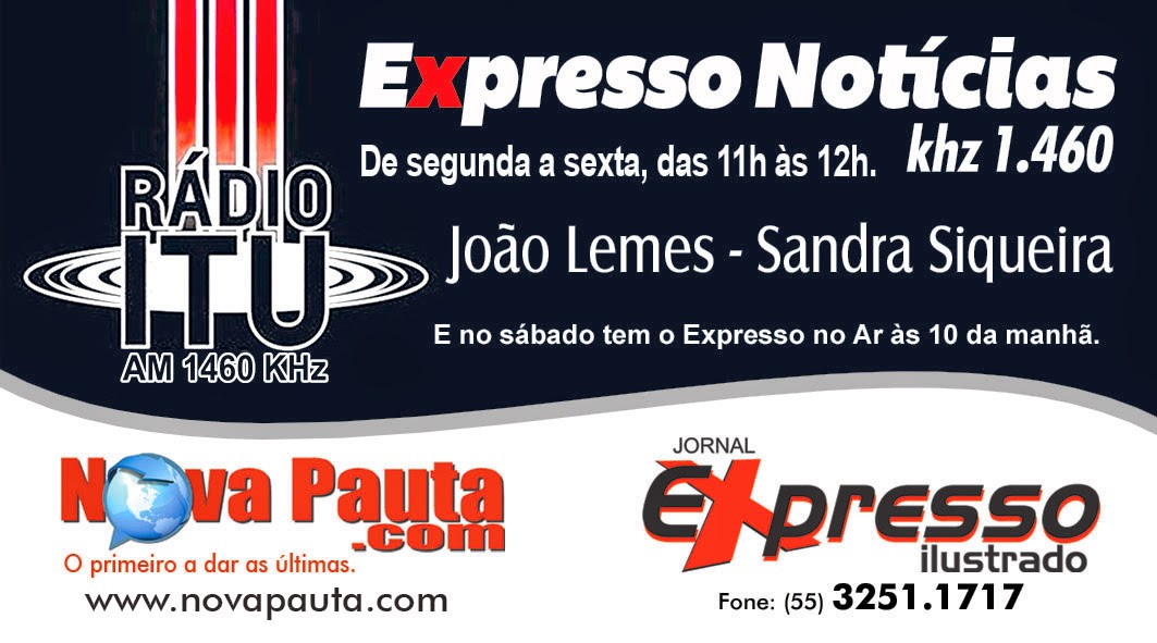 Geral InícioGeral Publicado em 14/11/2014 POR NP Expresso FacebookTwitterWhatsAppLinkedinTelegram Também no Expresso no Ar de Sábado, os comunicadores Márcio Brasil e João Leonel. Apoio: URI Santiago, Nelsinho Máquinas, Trilegal Thê, Hospital de Caridade e Jornal Expresso. DEIXE UMA RESPOSTA Cancelar resposta Comentário: Por favor digite seu comentário! Nome:* Por favor, digite seu nome aqui E-mail:* Você digitou um endereço de e-mail incorreto! Por favor, digite seu endereço de e-mail aqui Site: Salve meu nome, e-mail e site neste navegador para a próxima vez que eu comentar. Siga o NP Expresso 184.758 132,525FãsCurtir 72,444SeguidoresSeguir Notícias Recentes Estado Adolescente morre em acidente com trator Camaquã (Região de Pelotas), RS - Jonathan Gabriel Wachholz Konflanz, de 16 anos, morreu... 12/03/2026 Geral Assessor é preso por descumprir medida da Lei Maria da Penha Rosário do Sul – RS – (Santa Maria) - Um assessor de gabinete de... 12/03/2026 Nacional Ratinho vira alvo de ação após fala sobre Erika Hilton Nacional - Ratinho criticou a deputada federal Erika Hilton (Psol-SP), ao vivo na quarta-feira... 12/03/2026 Geral Poluição atinge uma nascente do rio Icamaquã Santiago - RS - (Região Central) - Um leitor denunciou um caso grave de... 12/03/2026 Leia Também Estado Adolescente morre em acidente com trator Camaquã (Região de Pelotas), RS - Jonathan Gabriel Wachholz Konflanz, de 16 anos, morreu... 12/03/2026 Geral Assessor é preso por descumprir medida da Lei Maria da Penha Rosário do Sul – RS – (Santa Maria) - Um assessor de gabinete de... 12/03/2026 Nacional Ratinho vira alvo de ação após fala sobre Erika Hilton Nacional - Ratinho criticou a deputada federal Erika Hilton (Psol-SP), ao vivo na quarta-feira... 12/03/2026 VER TODAS AS NOTÍCIAS