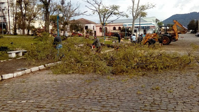 praça caíram muitas árvores.