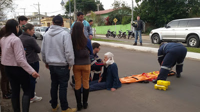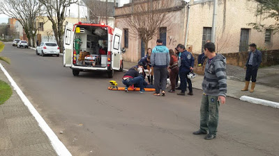 Santiago – Foi hoje à tarde na avenida Sete de Setembro, perto do Posto 27, logo após o quebra-molas (centro-bairro). Uma idosa foi atropelada por mais um motorista que fugiu sem socorrer. A Samu atendeu ao acidente e levou a vítima pro hospital onde ficou em observação. As fotos são de Rogério Lima.