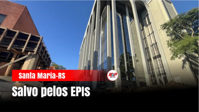 Santa Maria – RS – (Região Central) – Um jovem de 22 anos passou por um drama na tarde enquanto trabalhava na pintura externa do Fórum. O rapaz estava na parte alta do prédio quando uma barra do andaime quebrou. O susto foi grande, mas a segurança funcionou.