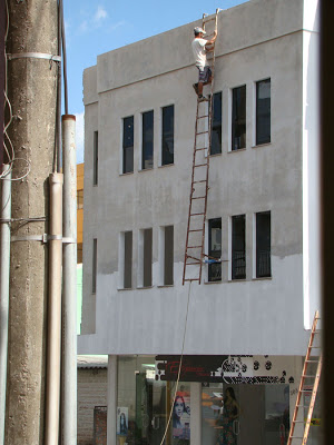 Início essa postagem fazendo uma pergunta aos leitores do site Nova Pauta: alguém sabe qual o nome da empresa, os responsáveis pela construção do prédio das fotos acima, na rua Benjamin Constant, próximo da Rádio Santiago? Tentei saber e recebi informações incertas. Mas gostaria de divulgar aqui e dizer que essa empresa/responsáveis está muito errada em permitir que dois trabalhadores se exponham ao perigo desta maneira!! O flagrante foi agora na tarde desta quarta-feira. E se você, leitor, cruzar por lá agora à tarde vai ver essas duas pessoas, arriscando suas vidas ao lixar e pintar o prédio, lá nas grimpas, sem qualquer equipamento de proteção.