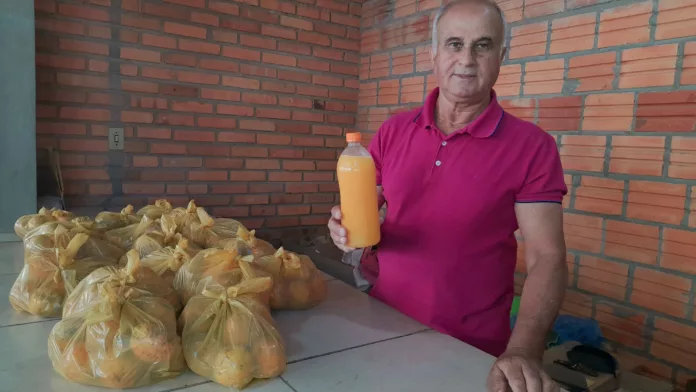 Apesar de ter produção própria (6 mil pés de laranjeiras e 800 de bergamoteiras) numa área de 17 hectares, entre janeiro e abril ele precisava comprar frutas de outras regiões. No entanto, a seca em São Paulo tornou isso inviável.
