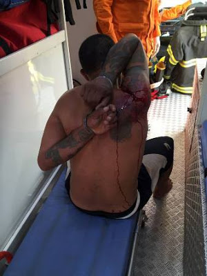 Nenhum policial se feriu. Ele está sendo atendido no hospital, depois será