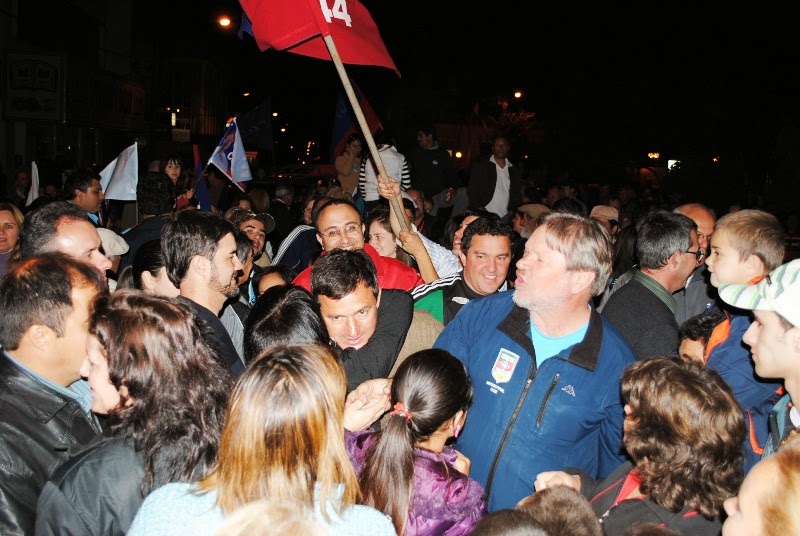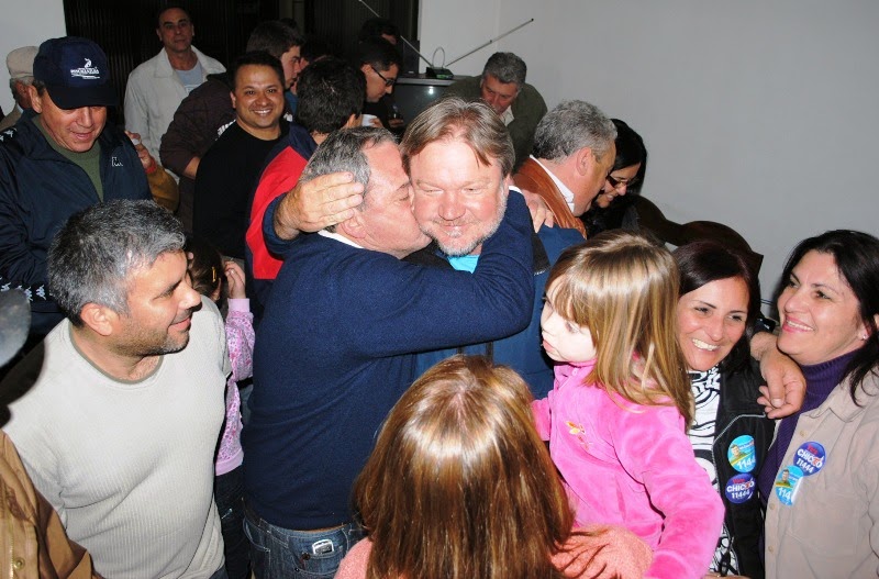 Em 2010 ele se elegeu deputado numa baita comemoração, como você vê nesta foto, com o vice-prefeito Toninho Gomes lhe dando o beijo da vitória. Em 2011 veio a tragédia na BR 287 e ficamos sem deputado; agora, quase três anos depois, o seu cabo eleitoral Miguel Bianchini (que aí na foto sorri ao lado de Chicão e abraça seus eleitores ) retoma este posto tão cobiçado e ao mesmo tempo tão difícil.