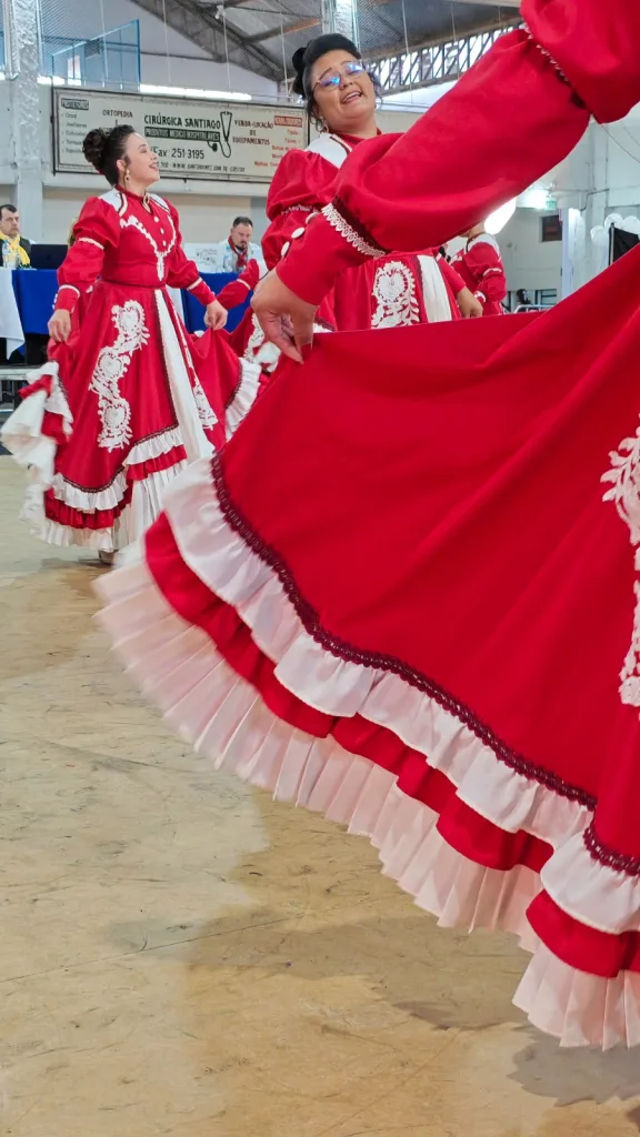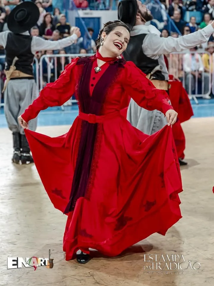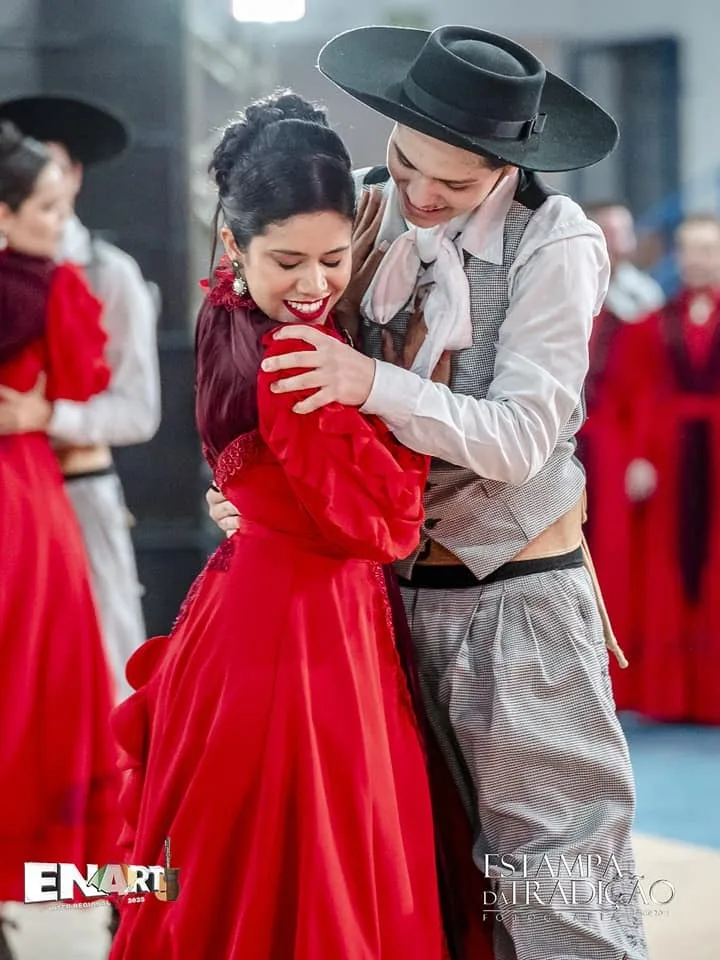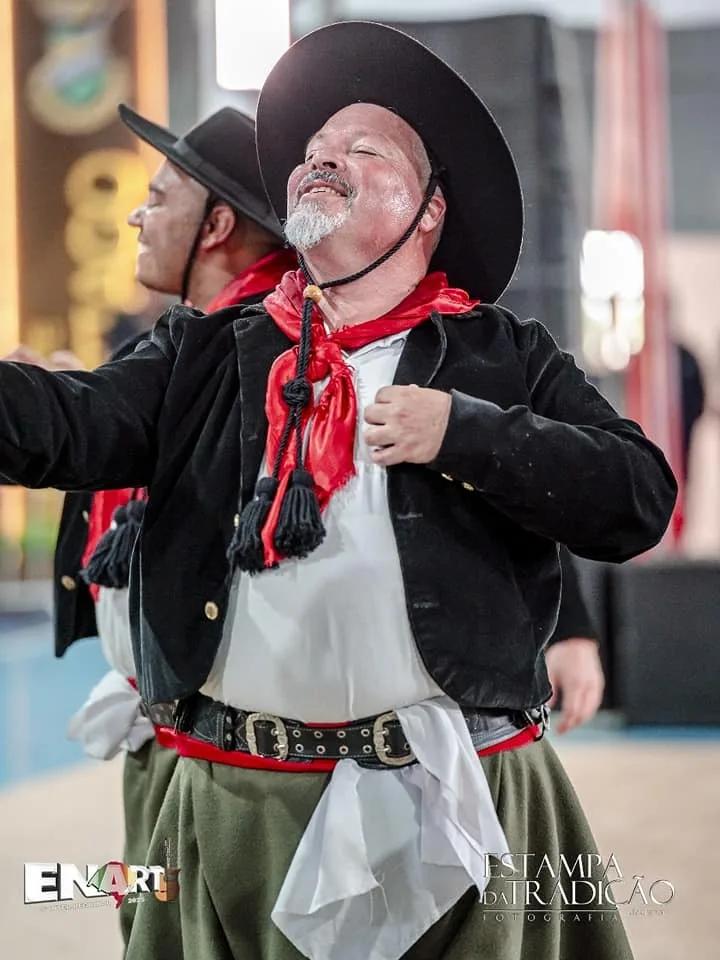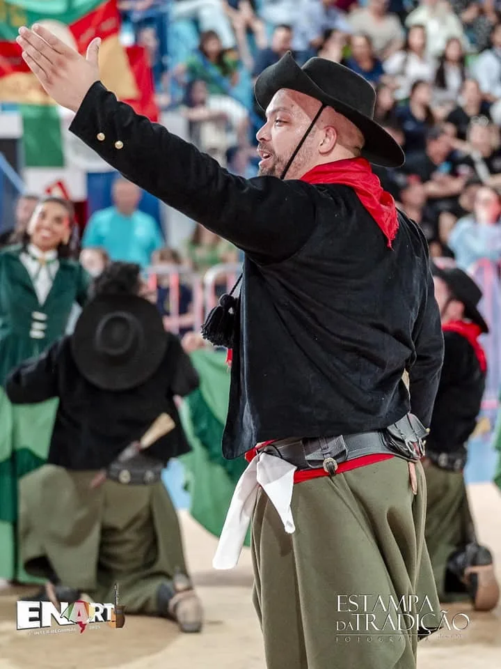 (João Bicaco) E não foi só dança. Teve arte de montão. Encenação teatral de causar inveja aos globais. Performance que arrepiou. Gaiteiro tinindo no teclado. Declamador com verso firme. Trovador de mão cheia fazendo peleia de rima. Um espetáculo redondo, do tipo que o Brasil inteiro precisava ver. Coisa de encher o peito de orgulho do nosso pago.