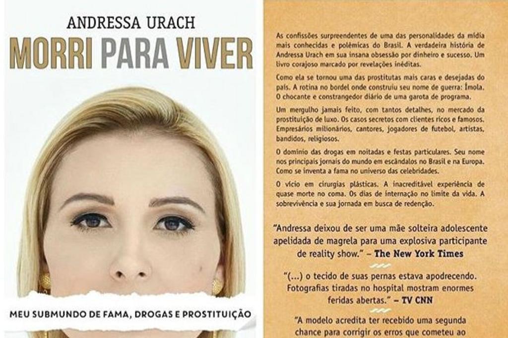 A vendagem de sua biografia já compete com a do bispo Edir Macedo, da nova igreja da ex-modelo. O livro tem história de sexo, drogas e a busca desenfreada pela fama, o que levou a gaúcha Andressa Urach quase à morte por infecções devido aos implantes no corpo. Ela é descrita como uma das garotas de programa mais caras e desejadas do país, cobrando até 15 mil por duas horas de sexo.