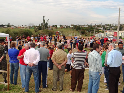 A prefeitura de Santiago inaugurou ontem o Espaço Público de Lazer, localizado na rua Princesa Isabel, fundos do condomínio residencial (Minha Casa) no bairro Vista Alegre. A área é de 5 m² e oi feita uma pista de caminhada (asfaltada), praça esportiva de areião e cercada, possibilitando aos moradores do bairro praticarem esportes, além de colocação de brinquedos para crianças. A obra custou 100 mil reais, sendo a metade repassada pelo governo estadual, ainda na gestão de Yeda Crusius (de lá para cá, a prefeitura nunca mais recebeu um centavo do Estado, a não ser os repasses obrigatórios).
