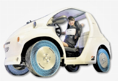 A japonesa Bridgestone criou um pneu sem ar. O equipamento foi apresentado no Salão do Automóvel de Tóquio. Ele é feito de uma resina termoplástica, de última geração, e tem vários raios em curvas, que suportam o peso do carro e absorvem as irregularidades das ruas e das estradas. Uma das vantagens é que é 100% reciclável. Não há data para início de vendas.