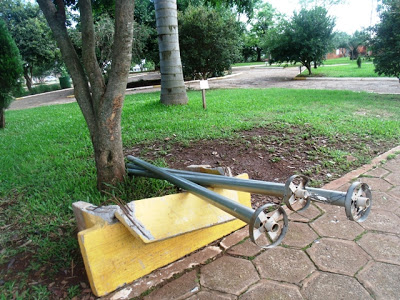 A Brigada de Unistalda, chefiada pelo sargento César Kowalski estava há dias tentando pegar os destruidores da praça e de luminárias em frente ao Sicredi. Pois na noite de ontem um rapaz (16 anos) e uma garota de 20 anos foram flagrados quebrando os bancos e arrancando as luminárias em frente à prefeitura. Os dois tentaram fugir em direção aos trilhos, mas foram seguidos e pegos. Pararam na delegacia de Santiago e terão que dar muitas explicações.