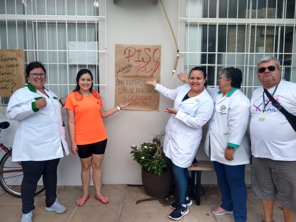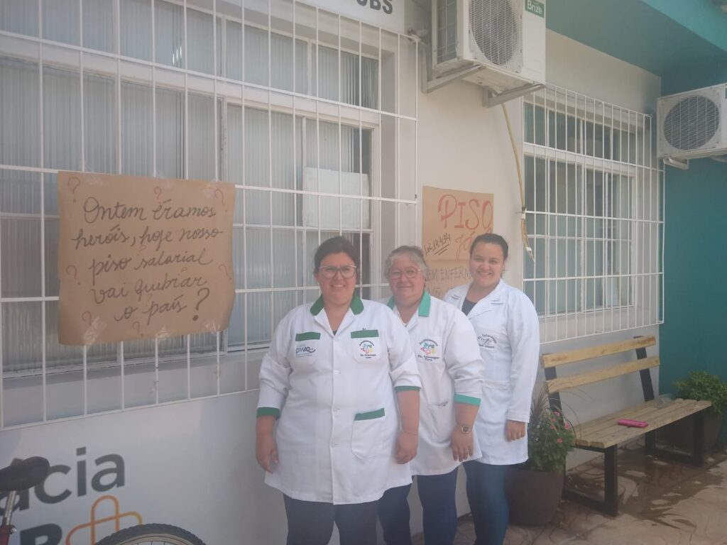 Em Unistalda, enfermeiros e técnicos em enfermagem aderiram e também estão mobilizados em frente à Unidade Básica de Saúde (UBS), até as 16h.