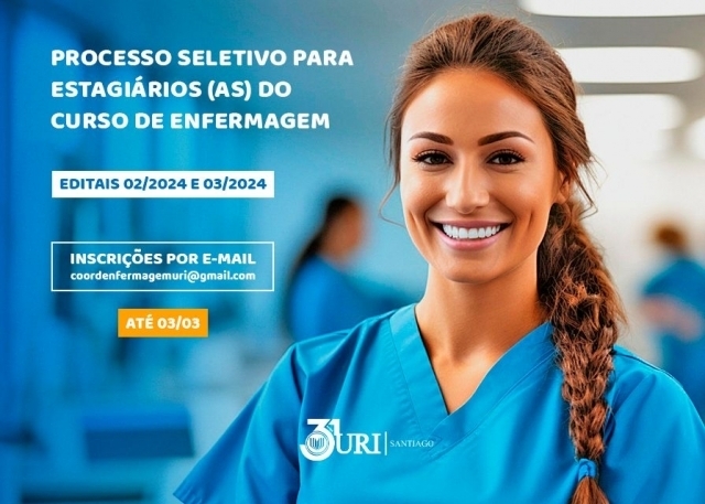 A URI Santiago, em conjunto com o curso de Enfermagem, comunica a abertura de inscrição em dois processos seletivos para estágio.