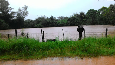 É tanta água que toma conta de ruas e rios, como mostram as fotos tiradas agora pela manhã em São Francisco, onde até o muro de uma casa caiu.