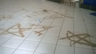entrar no ginásio e ver a bagunça deixada por alguns desocupados. A janela do