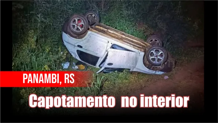 Panambi, RS – A Brigada e os Bombeiros foram acionados após a informação de que um veículo havia capotado na estrada velha de Linha Jaciandi, nas proximidades do Vale do Lazer.