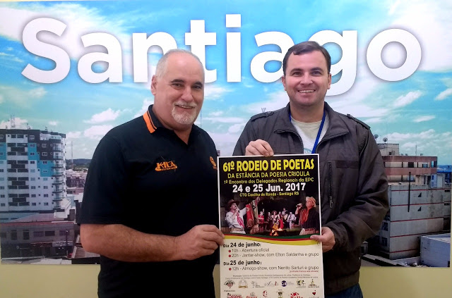 Santiago receberá poetas, cantores, músicos e trovadores para dois dias de muita cultura e reencontro no 610 Rodeio dos Poetas. Será no CTG Coxilha de Ronda dias 24 e 25 de junho.  Haverá apresentações, palestras, premiações, debates, shows e mateada. Dentre as atrações estarão os cantores Elton Saldanha e Nenito Sarturi. Elton se apresenta no sábado à noite e Nenito no domingo ao meio-dia num almoço festivo. A entrada é gratuita, com exceção das refeições.
