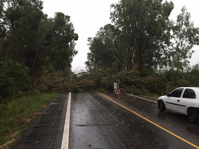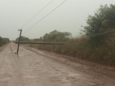 Na estrada do Radar (Santiago) houve queda de postes, como mostra a foto de Juliana Guerra.