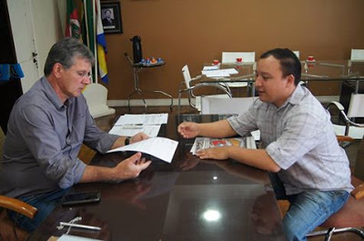 Hoje à tarde o prefeito Ruivo (à esquerda) recebeu o vereador Marion, PT. Ele anunciou que fez contato com o deputado federal Marco Maia, e este lhe prometeu destinar 100 mil para a manutenção de ESFs em Santiago. Marion deu a boa nova e se comprometeu em manter contato com o deputado para garantir a verba o mais breve possível.