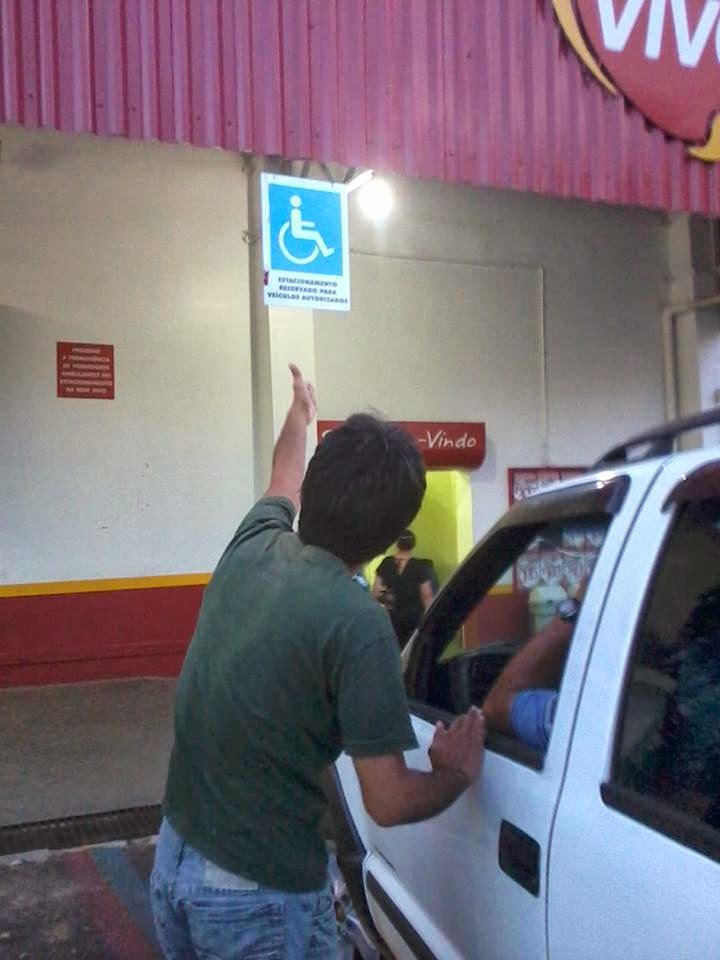 O presidente do PV de Santiago, Vanderlei Almeida, ficou indignado com o vereador Sandro Palma (PTB), atual presidente da Câmara de Santiago. Ele conta que ao chegar no supermercado Rede Vivo viu a S10 do vereador estacionada na vaga destinada aos deficientes físicos. Almeida pediu ao gerente para que tomasse uma atitude, mas conta que não lhe deram bolas. Por isso, aguardou a saída do vereador e o criticou pelo desrespeito. “Ele mandou que eu dormisse e tirasse tantas fotos quanto quisesse”, desabafou Vanderlei Almeida, que agiu em nome da cidadania e lamentou que além de estacionar em lugar indevido, Palma não reconheceu o erro.